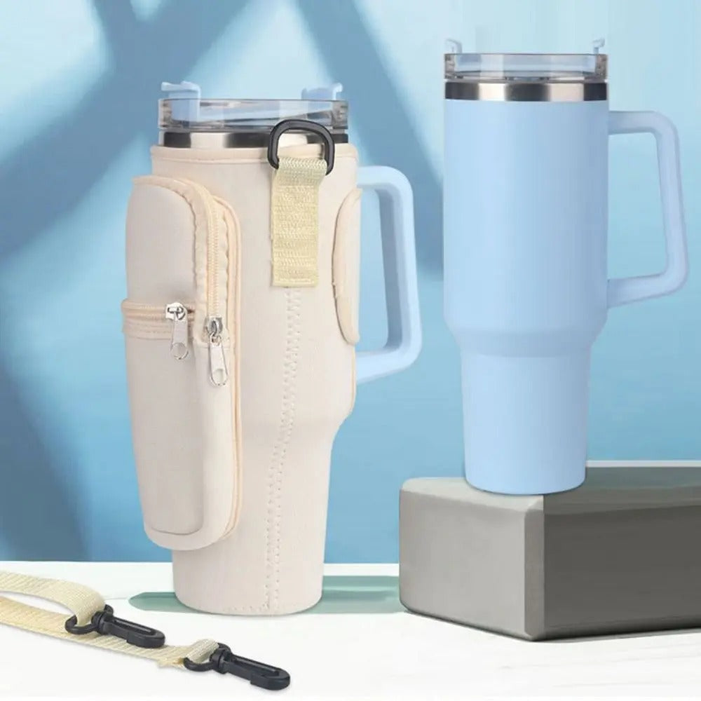 Descubra a Conveniência e Proteção com a Bolsa Suporte para Copo de Água com Alça de Ombro.